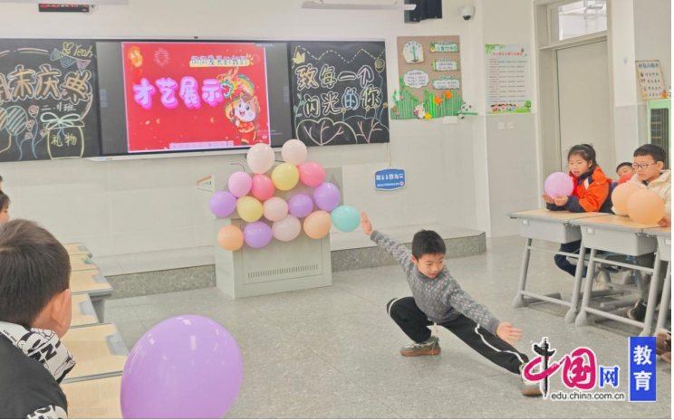 教室的角落、讲台前的空地,都是孩子们的“星光舞台”:武术少年舒展拳脚,一招一式的动作里满是少年的灵动;还有独唱、朗诵等节目轮番登场,童趣的表演里藏着蓬勃的朝气,既传递着积极向上的能量,也让每个孩子的特长都拥有了绽放的舞台。